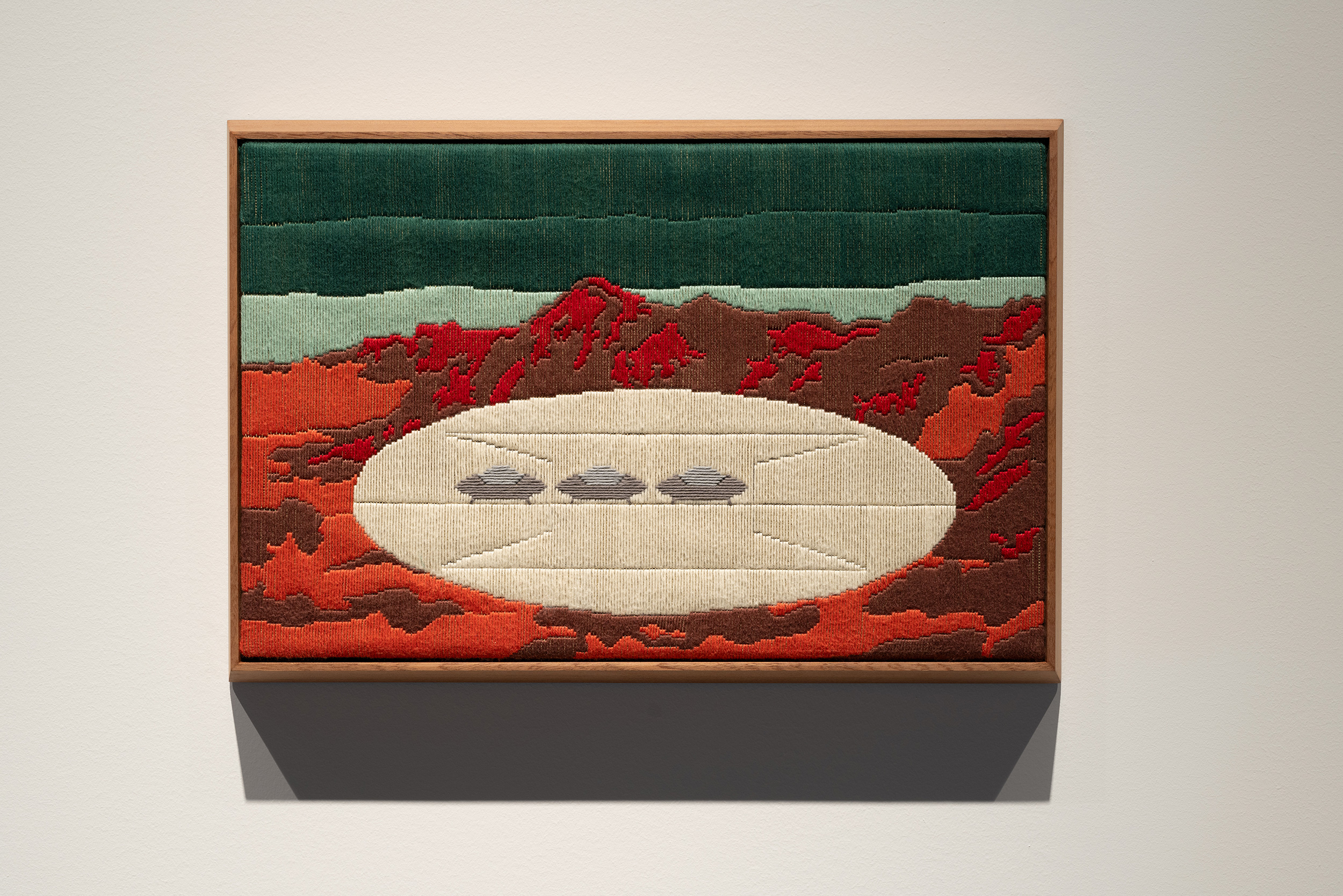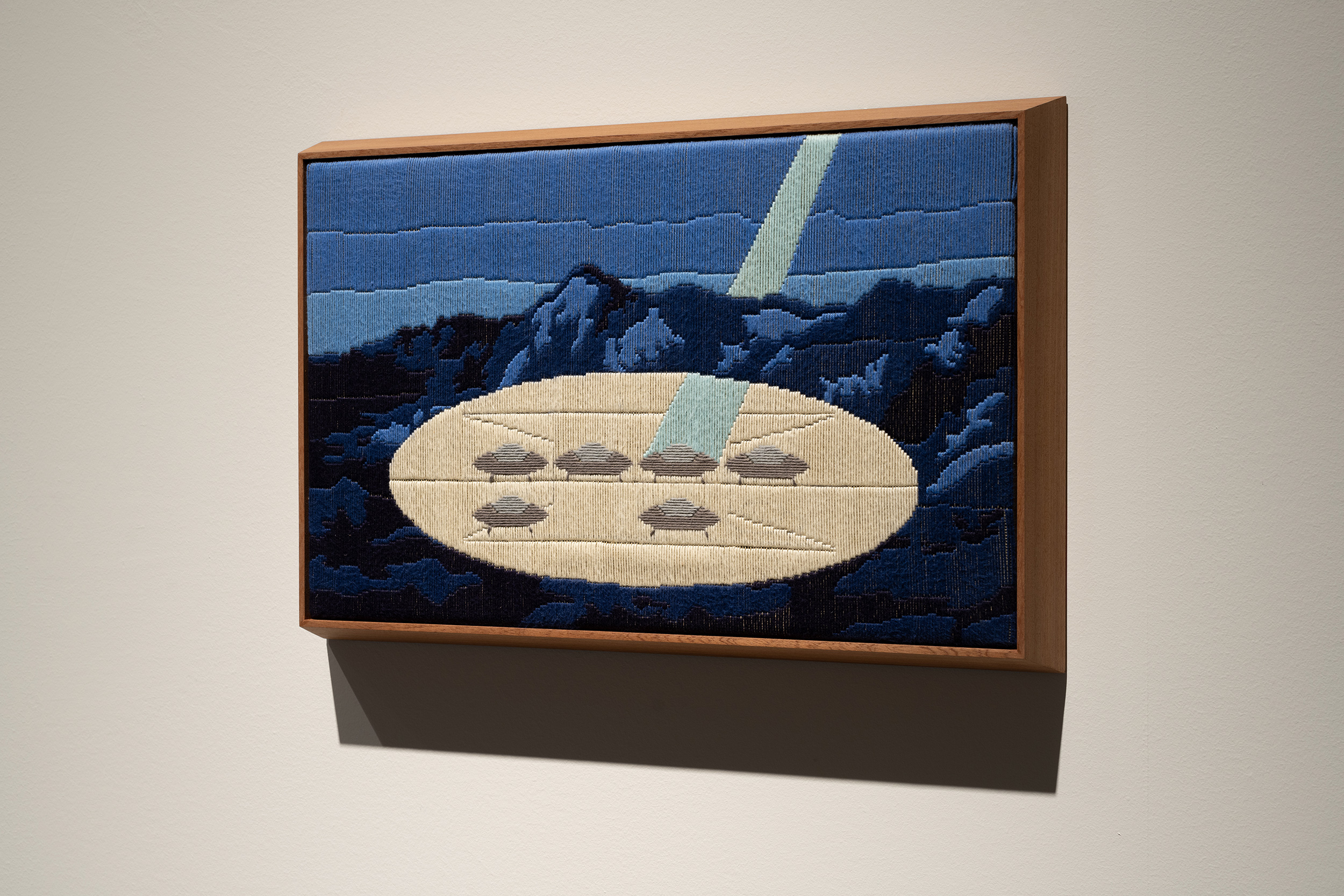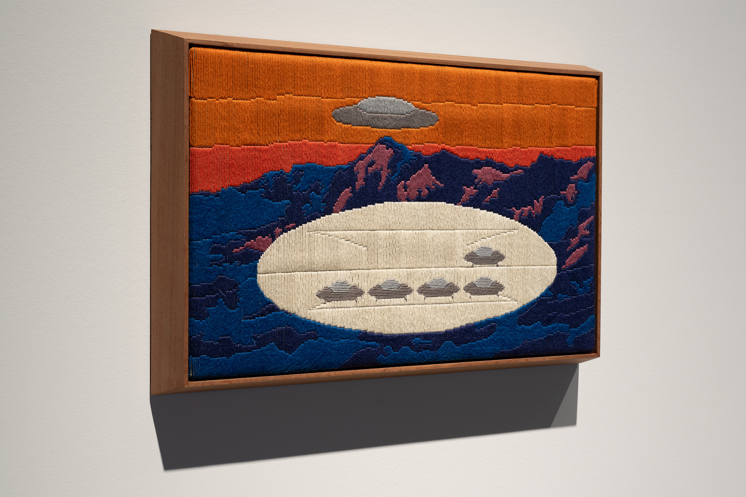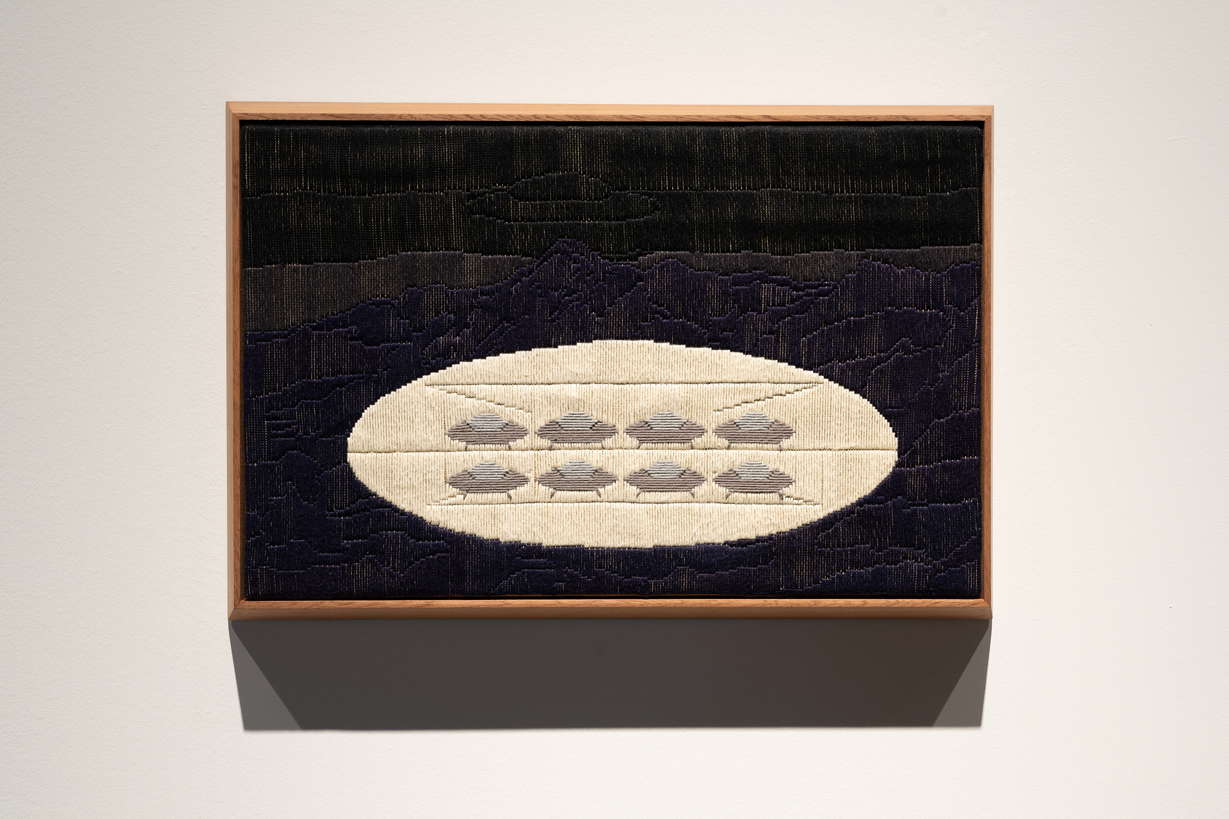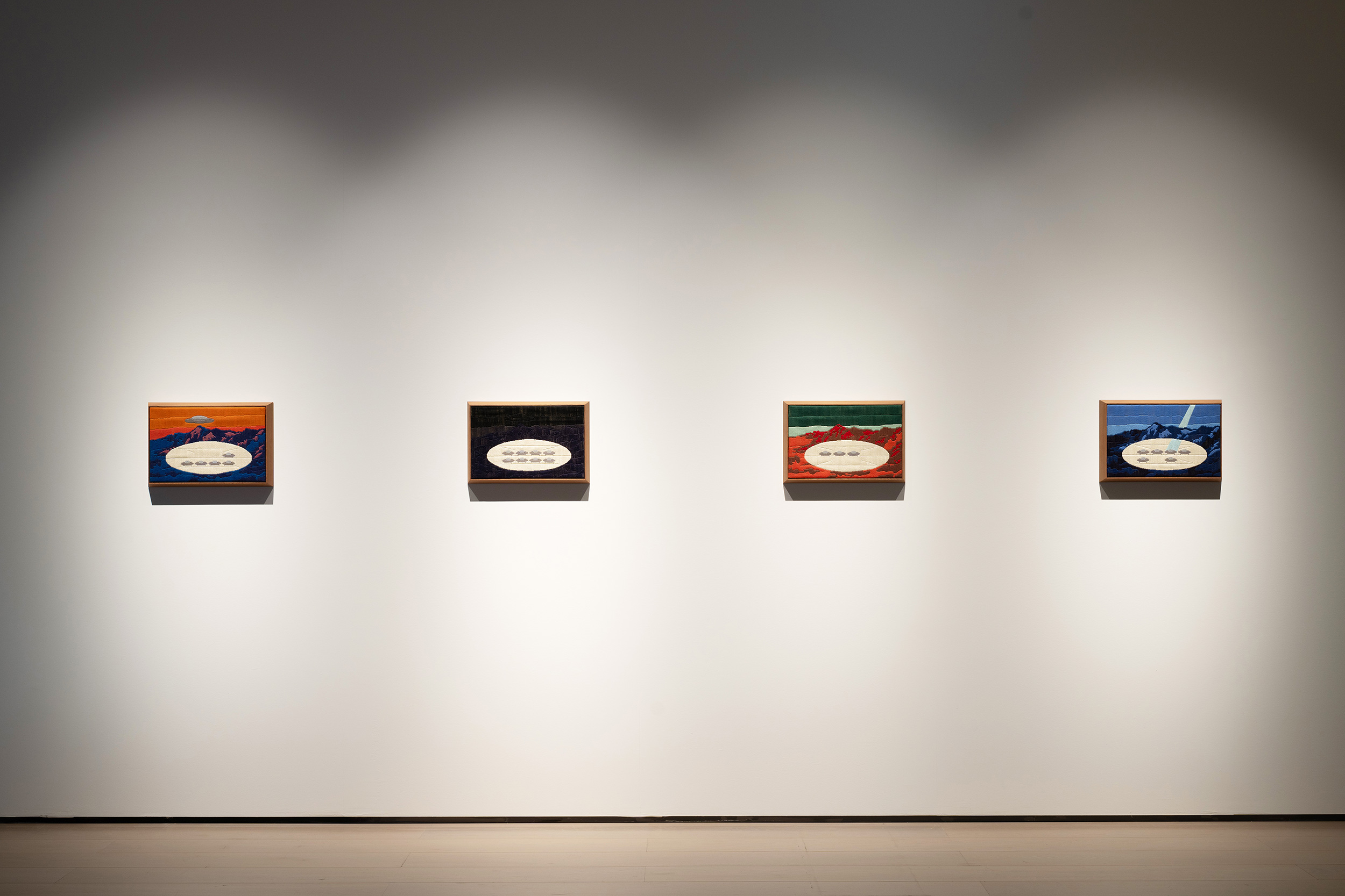 Elemental 1-4, 2023-2024 Needlepoint embroidery, cotton thread, linen canvas, mahogany frame